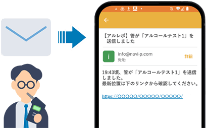 外出先からもアルコールチェック結果をスマホアプリで管理者に報告。報告時と承認時にメッセージを自動通知します。