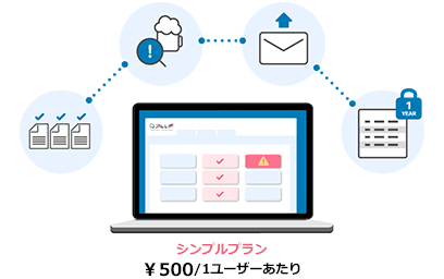 - Aシンプルプランで、月額500円/1ユーザーです。(アルコール検知器なしプラン)