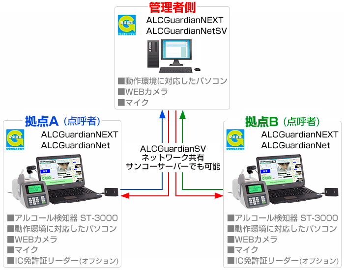アルコール検査結果をリアルタイムに管理者に通知。記録はデータセンターに1年間保管。クラウド型 アルコールチェックシステム。