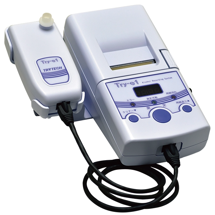 Try-e1は、誤反応が起きにくい燃料電池式センサー採用。高精度なアルコール検査が行えます。