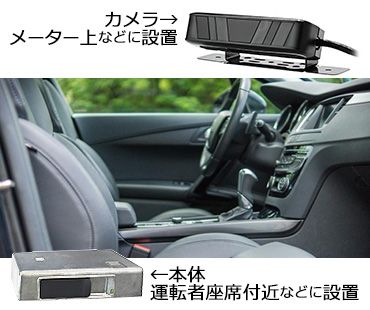 | 設置位置 | メーターフード上、インストルメントパネル中央上部、Aピラーなど カメラが顔を認識できる位置であれば、ある程度自由な場所に設置可能 |