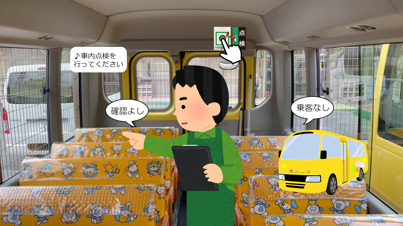 送迎バス置き去り防止を支援する安全装置のガイドラインに適合。車内置き去り防止安全装置で安心して通園できるバスに。