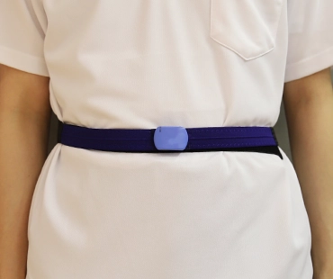 寝る直前に本体をベルトのホックに取付ける。表面が見えるよう上下の向きを間違わない。