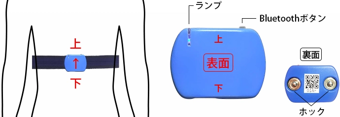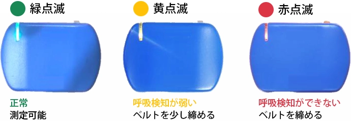 本体のランプが「緑」点滅になるまでベルトを締め具合を調節する。調節は座った状態で行う。