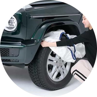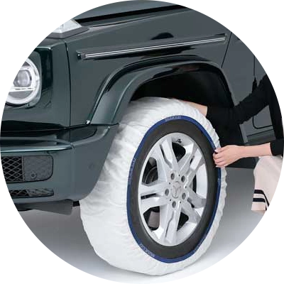 - 車両を動かすと自動的に補正され、正しい位置にスノーソックスが装着されます。