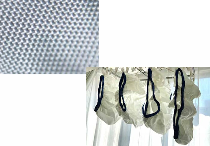 汚れが気になる時は、ざっと汚れを落とした後、洗濯機の手洗いコースでそのままお洗濯できます。乾かす時は、直射日光を避け、陰干ししてください。