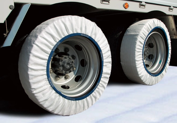 路上でのチェーンの脱着は、身体的負担だけでなく危険が伴います。ジャッキアップ不要で大型車でも1人で短時間で脱着できる布製タイヤチェーン「スパルコ スノーソックス」なら、リスクを最小限に抑えられます。