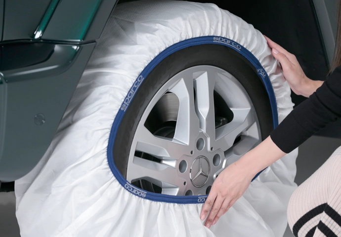 スパルコ スノーソックスは、車種を選ばず、あらゆるタイヤに適合できるよう幅広いサイズを取り揃えております。扁平率の低い大径タイヤやスタッドレスが存在しないタイヤにも装着可能です。