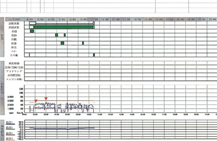 万一、荷の品質に問題が発生した場合でも、ドライバーの温度管理に落ち度がなかったことを日報が証明してくれます。また、速度制限を守り、急旋回や急ブレーキなどもない荷に優しい運転をしていることをデジタコが証明してくれます。