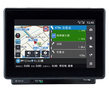 | 入出力インターフェース | 車速センサ、エンジン回転センサ、アナログ入力×5、汎用入力×8、ETC通信ポート、RS-232C×3、SDXC対応カードスロット、Bluetooth®5.0、共通端子、免許証リーダー、CAN入力、USB、3軸Gセンサ、3軸ジャイロセンサ |