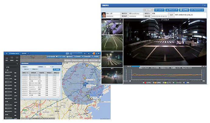 クラウドネットで接続運行管理動態管理動画取得日報自動作成・印刷荷待ち時間等の記録義務に対応運行指示書軌跡表示近傍車両検索ルート検索VICS・雨雲マップメッセージタブレット対応