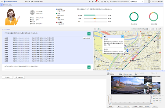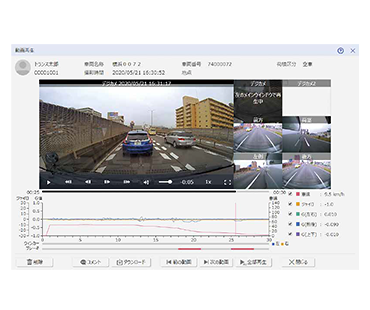 デジタコ DTS-G1のデータからドライバーの運転を点数で評価。指導内容に応じて動画を自動的に取得し、点呼の時などすぐに動画を再生できます。運行管理者は指導や評価がしやすくなり、ドライバーは安全運転意識が高まります。