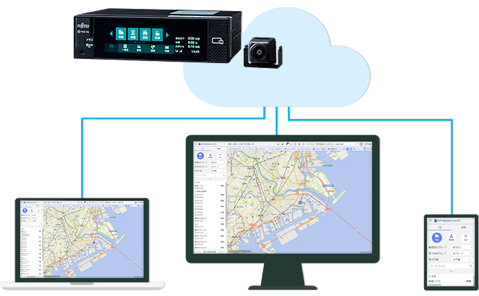 ITP-WebService V3は、富士通のデジタコの運行データやドライブレコーダーの映像データを取得して、車両の運行支援や運行管理を行うシステムです。データはクラウドに保存され、パソコンまたはタブレットを使用して、インターネットから24時間365日、利用できます。