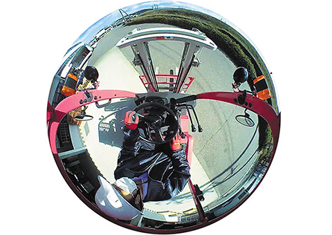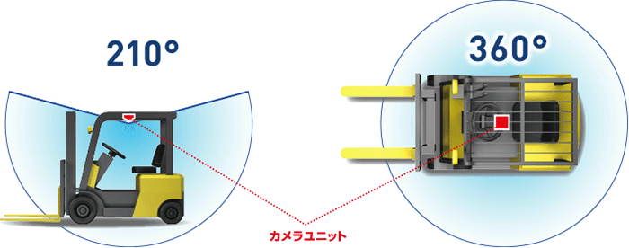 360度カメラ付フォークリフト専用ドライブレコーダー。カメラ1台でフォークリフトやオペレーターの状況を一目で確認。