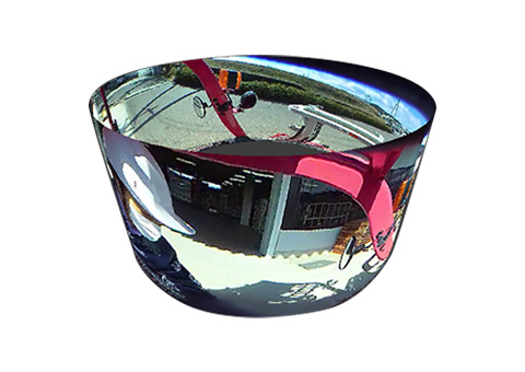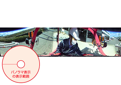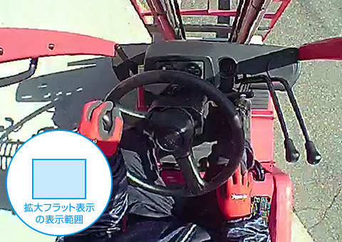 フォークリフトに取り付けたカメラ映像は、「魚眼/パノラマ/拡大フラット/リング型/ドーム型」5つの表示パターンで確認できます。 ユピテル イメージ画像と動画。