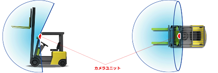 フォークリフトの前方にカメラを設置すれば、フォークリフトの上下左右、アームの可動範囲を撮影できます。