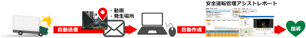 また、「安全運転管理アシストレポート」が自動作成され、安全運転の指導ポイントがひと目でわかります。