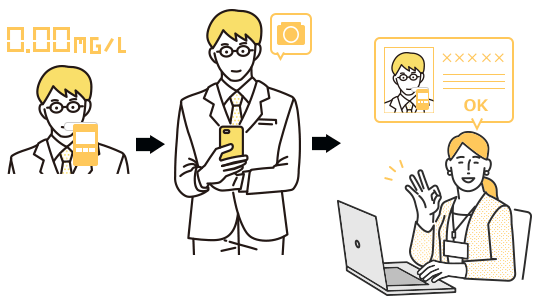 顔写真付でなりすまし防止。スマホアプリから送信したアルコールチェック結果を自動連動できます。