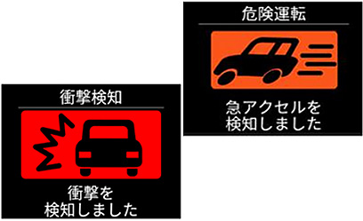 - 急発進や急ブレーキ、急ハンドルなど、事故を誘発する危険運転を警告。