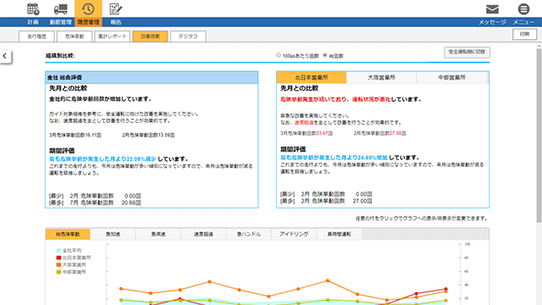 危険運転の多いドライバーを簡単に特定。指導すべきポイントが一目でわかります。
