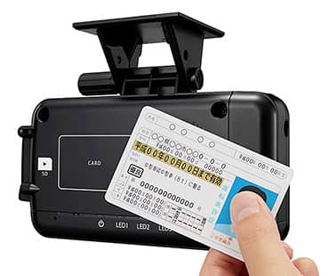 IC免許証リーダー付き、前方1カメラ/前方+車内または後方、2カメラ対応、通信ドライブレコーダー。