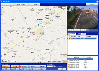 - 「トリガ記録データ」から事故やヒヤリ・ハットの発生場所を地図上に自動表示。