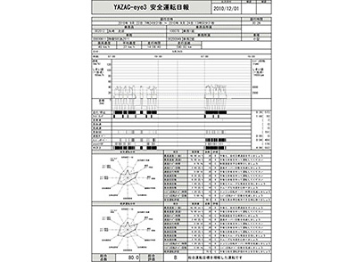 ドライバーごとに「安全運転日報」を日付単位で出力できます。速度チャートや安全でエコな運転ができているかの評価など、運転指導に役立ちます。