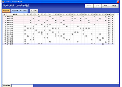 日々の運行データを解析し、「総合評価」「安全評価」「ECO評価」、3つの評価種別毎にランキング形式で評価します。