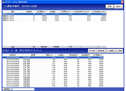 どのくらいエコな運転ができているか「エコ運転実績表」を表示します。登録された給油データを元に算出され、車両別の燃費やCO2排出量等が確認できます。