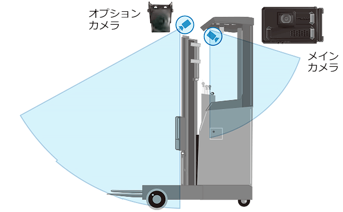 360°カメラでフォークリフトの全周囲をカバー。キーON後すぐに録画開始やキーOFF後に降車も録画可能に。