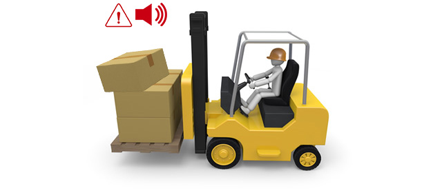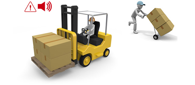 フォークリフトにビーコンを所持した作業員が接近すると、警報を鳴らし、注意を促し、記録します。