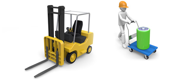 フォークリフトのバッテリー電圧低下を検知。適切な充電のタイミングをお知らせします。