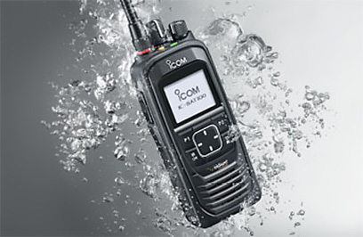 IC-SAT100は、雨の屋外や粉塵が舞う環境でも安心して使える防塵防水性能IP67に、米国国防総省物資調達基準MIL-STD 810Gに準じる堅牢性を備えています。