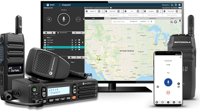 モトローラ・ソリューションズが展開する無線通信ソリューションのブランド「WAVE PTX」。このWAVE PTXの端末には、「TLK110」などのIP無線機と、スマホと無線機の通信が可能になるIP無線アプリ「WAVE PTT」があります。