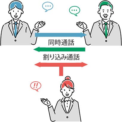 多くの無線機は交互にしか話せないため、相手が話し終わるまで自分が話せないというタイムラグがあります。IP501Mなら、携帯電話のようにお互いが同時に話せ、重要な連絡も割込んで伝えられます。