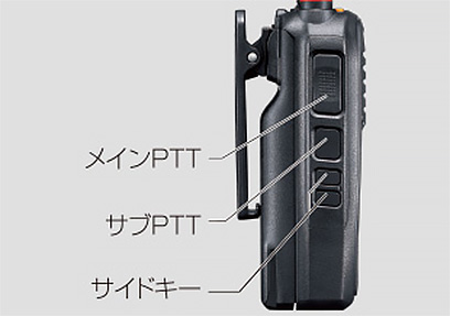 IP700 PLUSの本体には、LTEモードとDCRモード、それぞれ独立したPTTスイッチが割当てられるメイン/サブPTTに、短/長押しで機能を割当てられるサイドキー2つを装備。スムーズなデュアル運用を可能にしました。