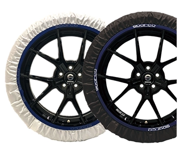 新チェーン規制対応。ジャッキ不要で脱着できる布製タイヤチェーン。耐久性に優れ、走行静か。