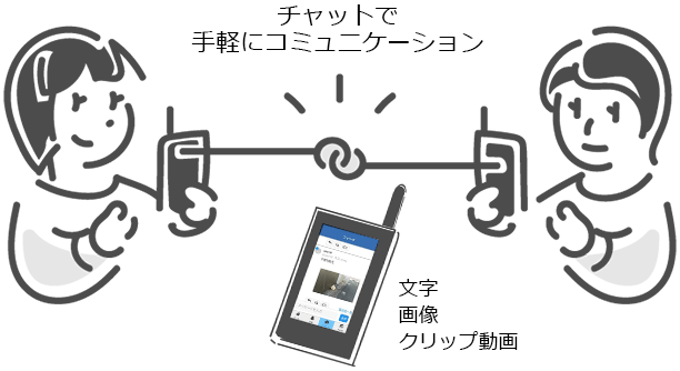 音声だけじゃなく、チャット形式で文字や画像、5秒程度の短いクリップ動画を送信できます。スマートフォンのように手軽なコミュニケーションが図れます。