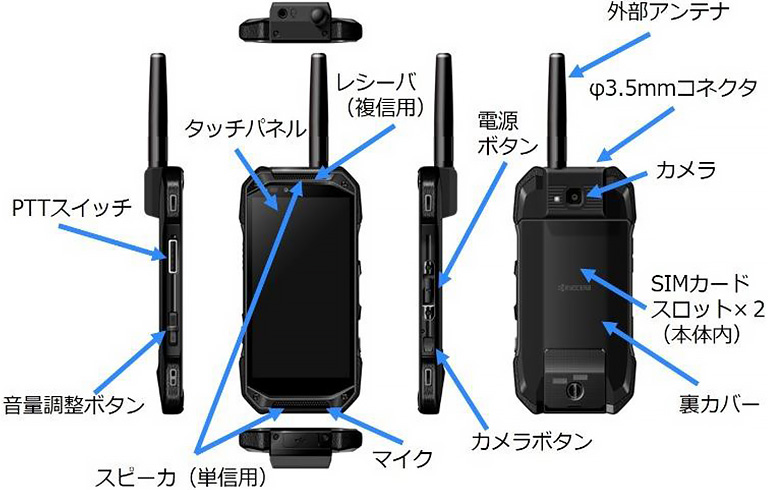 - A全国一斉通信が可能となり、音声通信、地図データ、カメラ機能によるリアルタイムな画像や映像の配信、チャット、センシング、防災など多彩なアプリケーションが利用できるようになりました。