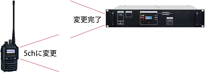事前設定で登録した携帯機からコマンド送信によって、EXR-7000CRのチャンネル変更や中継動作の一時停止の操作を遠隔で行うことができます。安易に入れない場所に中継器を設置している場合にも困りません。